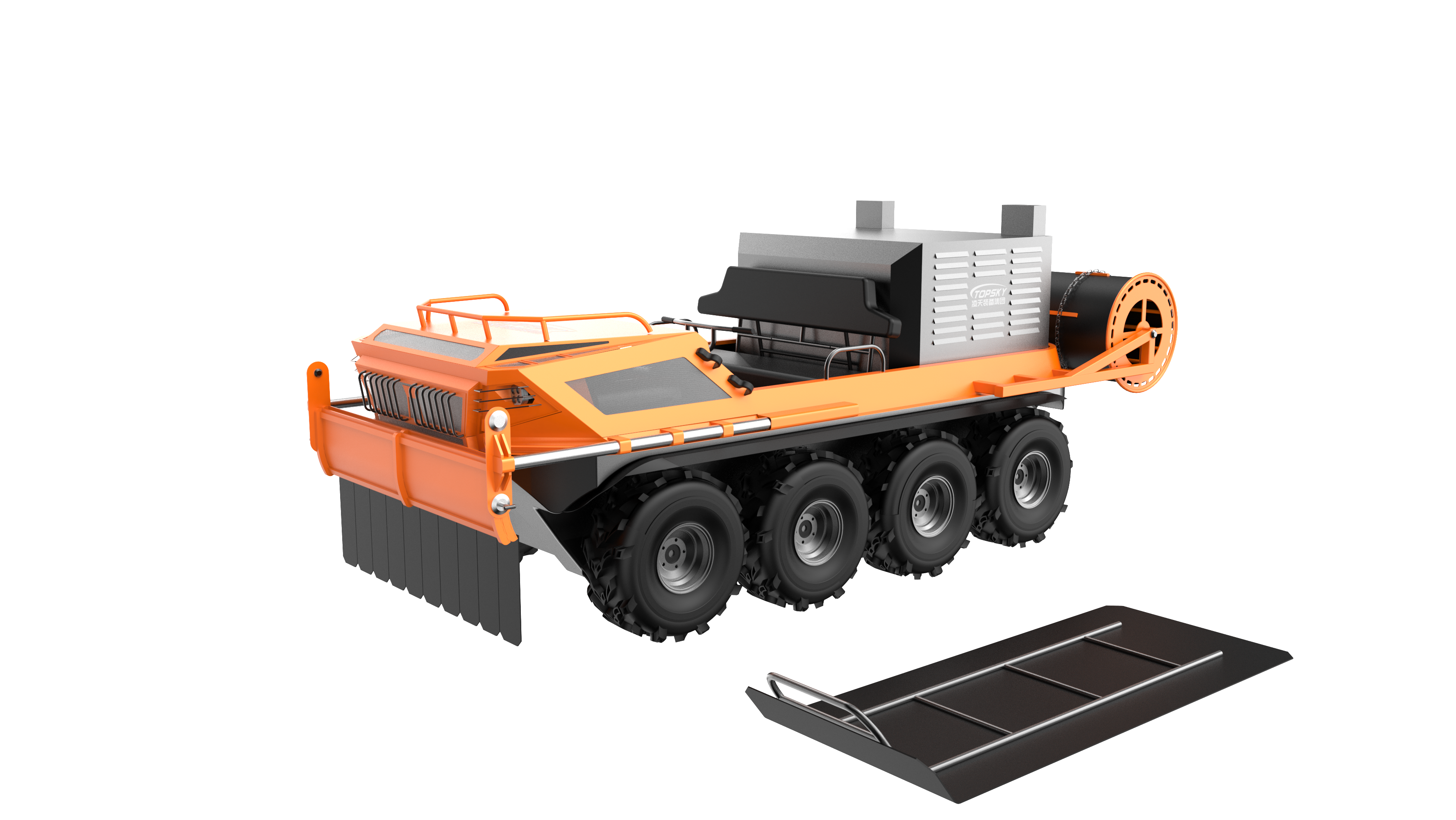 全地形:上山下水,爬坡過坎,泥潭沼澤,8×8低壓輪胎適合所有救援場景。