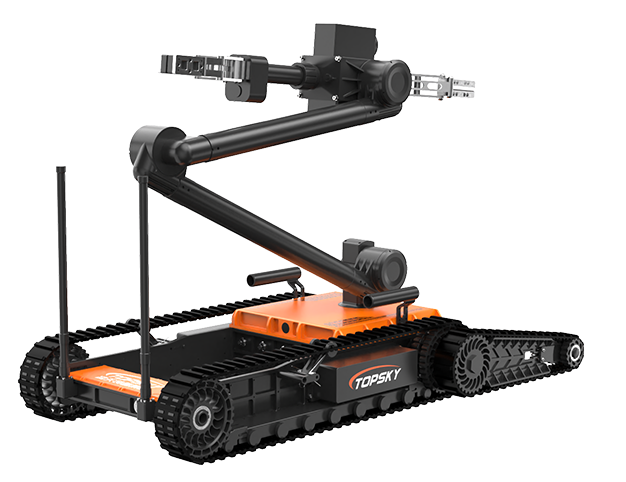 排爆機器人主要是用來處理爆炸物相關(guān)工作的排爆式機器人,也可用于偵察人難以達到的地形的一種機器人。7自由度排爆機械手能實現(xiàn)不同角度旋轉(zhuǎn),近端最大可抓舉16KG的重物,小手爪可抓取3KG重物,機械臂可裝載爆炸物銷毀器,可現(xiàn)場摧毀爆炸物,底盤采用履帶+單擺臂結(jié)構(gòu),能適應各種地形快速作戰(zhàn)部署。同時機器人配備有線控制可以網(wǎng)絡(luò)干擾情況下通過有線遠距離作業(yè)。排爆機器人可與配件一同使用,包括銷毀器(例如29mm),爆炸物的遠程引爆控制系統(tǒng)等。