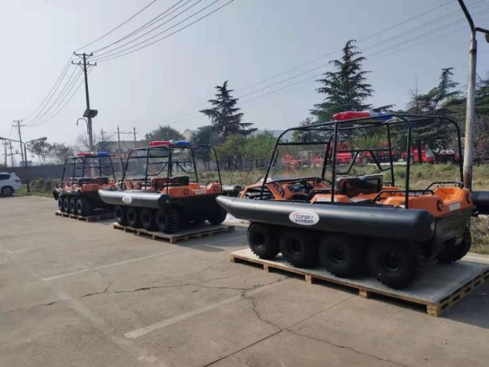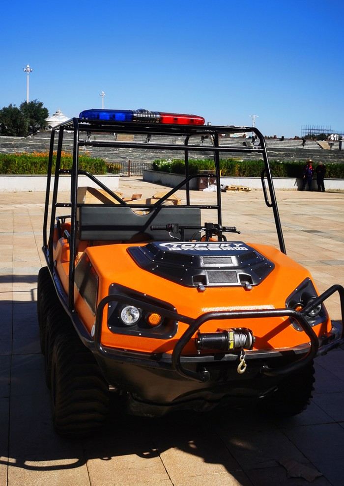 在復(fù)雜惡劣的地形條件和自然環(huán)境下,水陸兩棲全地形車可以讓搜救隊(duì)員和攜帶的救援裝備快速到達(dá)救援現(xiàn)場(chǎng),減少徒步帶來提供消耗,完成最后一公里最好五分鐘緊急救援任務(wù)。水陸兩棲全地形車可配備點(diǎn)到絞盤、救援擔(dān)架組件、探照燈、警示燈、警報(bào)器、脫鉤、破拆工具等裝備, 給救援團(tuán)隊(duì)提供救援保障,更安全的解救傷員和疏散群眾。