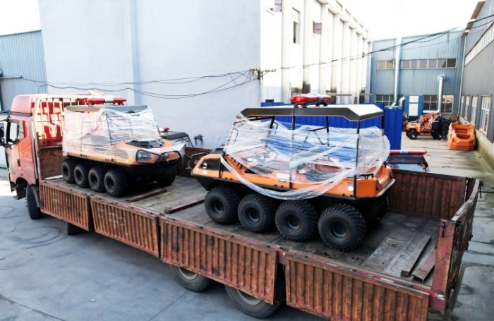 針對(duì)水災(zāi)頻發(fā)的地區(qū),水域救援任務(wù)必不可少。但往往洪澇災(zāi)害、城市內(nèi)澇往往伴隨著惡劣的天氣和崎嶇的地形,沖鋒舟需要多次搭載不同交通工具并數(shù)次轉(zhuǎn)移,水陸兩棲全地形車可以輕松通過水淹、泥濘、沼澤等環(huán)境,無需人力搬運(yùn),實(shí)現(xiàn)陸地駕駛和水中行走自由切換,以最快的時(shí)效抵達(dá)現(xiàn)場(chǎng)實(shí)施救援。