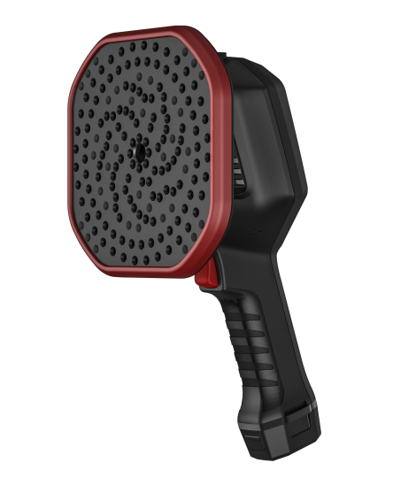 本產(chǎn)品是一款手持式的工業(yè)聲學(xué)成像儀,廣泛應(yīng)用于電力局放,帶壓或真空條件下的氣體泄漏檢測、氣密性檢測、設(shè)備異響定位等多種場景。儀器利用麥克風(fēng)陣列波束形成技術(shù)獲取聲源分布數(shù)據(jù),并配合高清攝像頭實時采集視頻畫面,通過將聲源分布數(shù)據(jù)同視頻圖像進行聲像融合,把變化的聲源動態(tài)的呈現(xiàn)在顯示屏上。 可以幫助現(xiàn)場巡檢人員快速定位故障,提供處置依據(jù)。