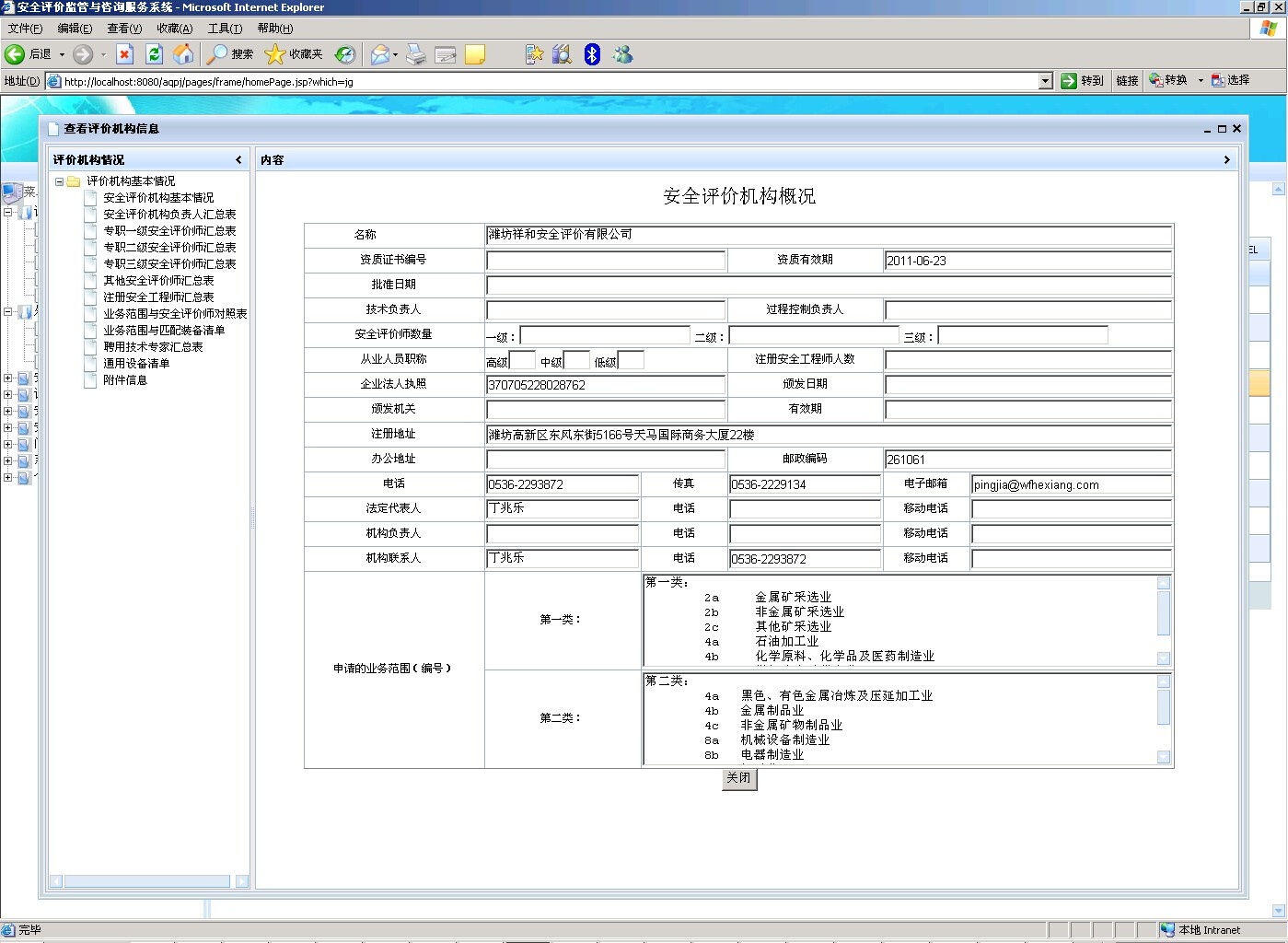 對(duì)安全評(píng)價(jià)機(jī)構(gòu)資質(zhì)及業(yè)務(wù)范圍進(jìn)行監(jiān)管,完成資質(zhì)的申請(qǐng)、變更、補(bǔ)發(fā)、延期、注銷的業(yè)務(wù)辦理,向社會(huì)公布評(píng)價(jià)機(jī)構(gòu)名單,省外評(píng)價(jià)機(jī)構(gòu)的備案,防止監(jiān)管評(píng)價(jià)機(jī)構(gòu)在其許可的業(yè)務(wù)范圍外進(jìn)行安全評(píng)價(jià)活動(dòng),建立全省安全評(píng)價(jià)機(jī)構(gòu)監(jiān)管數(shù)據(jù)庫。