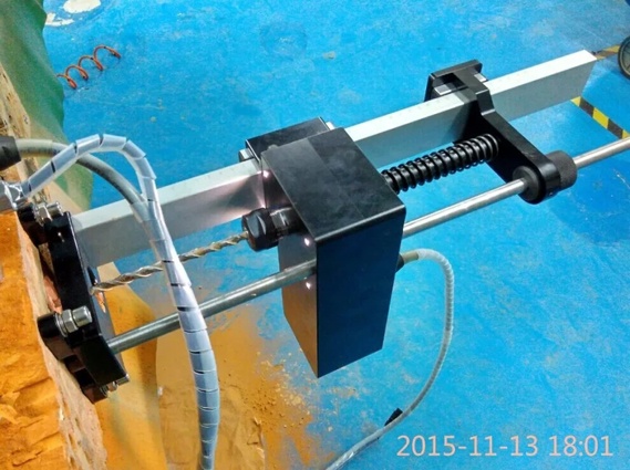 1) ★結(jié)構(gòu)形式:自動(dòng)推進(jìn)導(dǎo)軌+三角支架+單獨(dú)電源系統(tǒng) 2) ★LED燈光:配有LED探燈,可在惡劣條件下作業(yè) 3) ★推進(jìn)方式: 導(dǎo)軌式自動(dòng)推進(jìn) 手動(dòng)推進(jìn) 可自動(dòng)彈簧式 4) ★自動(dòng)推進(jìn)導(dǎo)軌:帶刻度指示 5) 轉(zhuǎn)向轉(zhuǎn)速:正反、快慢可調(diào) 6) 工作時(shí)間:12小時(shí) 7) ★供電方式:外部獨(dú)立電源箱,帶控制系統(tǒng)顯示,48V動(dòng)力大容量鋰電池供電 8) ★控制系統(tǒng): 可控制導(dǎo)軌自動(dòng)推進(jìn) 控制單元自帶電壓顯示,可以檢測(cè)剩余電量。 控制單元帶有電流顯示,監(jiān)測(cè)墻體負(fù)荷力,調(diào)節(jié)推進(jìn)速度。 9) 鉆頭長(zhǎng)度:0-400mm可調(diào) 10) 鉆透種類:墻體、金屬板壁、玻璃幕墻、陶瓷幕墻。 11) ★空載噪音:《35dB 12) 額定功率:200W 13) 電機(jī)配置:雙電機(jī)-主電機(jī)和導(dǎo)軌驅(qū)動(dòng) 14) 系統(tǒng)重量:≤6.8kg 15) 系統(tǒng)組成: 主機(jī) 1套 導(dǎo)軌1套 三腳架 1套 控制系統(tǒng)(含鋰電池電源箱) 1套 鉆頭套裝1套 電源線1套 防護(hù)用品1套