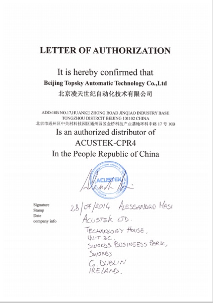 2014年7月28日,北京凌天成為 英國(guó)愛爾蘭ACUSTEK 公司 穿墻雷達(dá),門縫窺視儀 一級(jí)代理