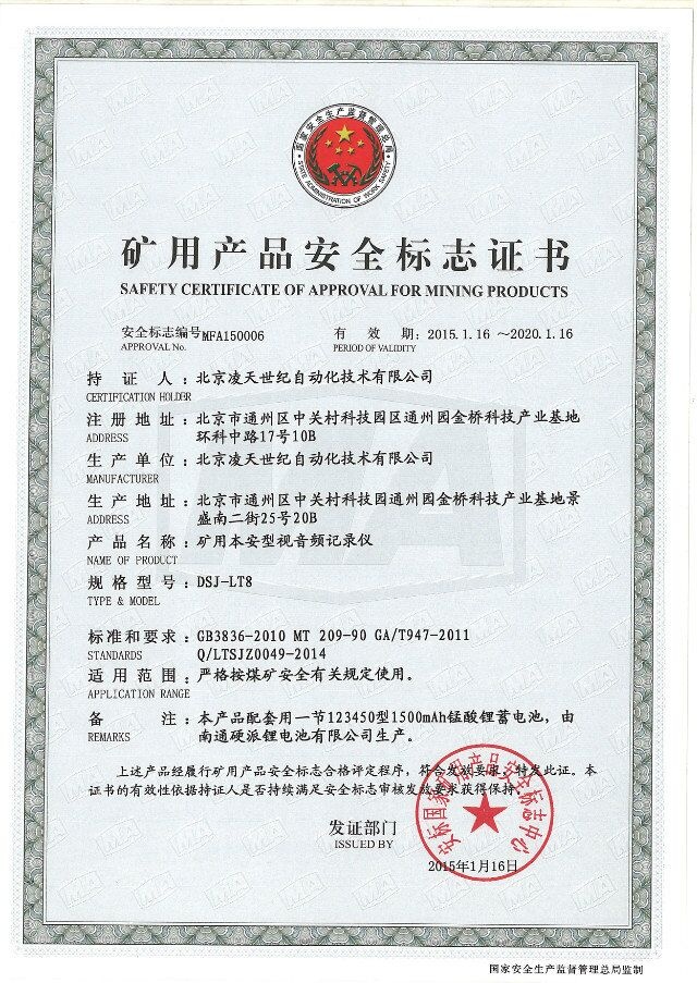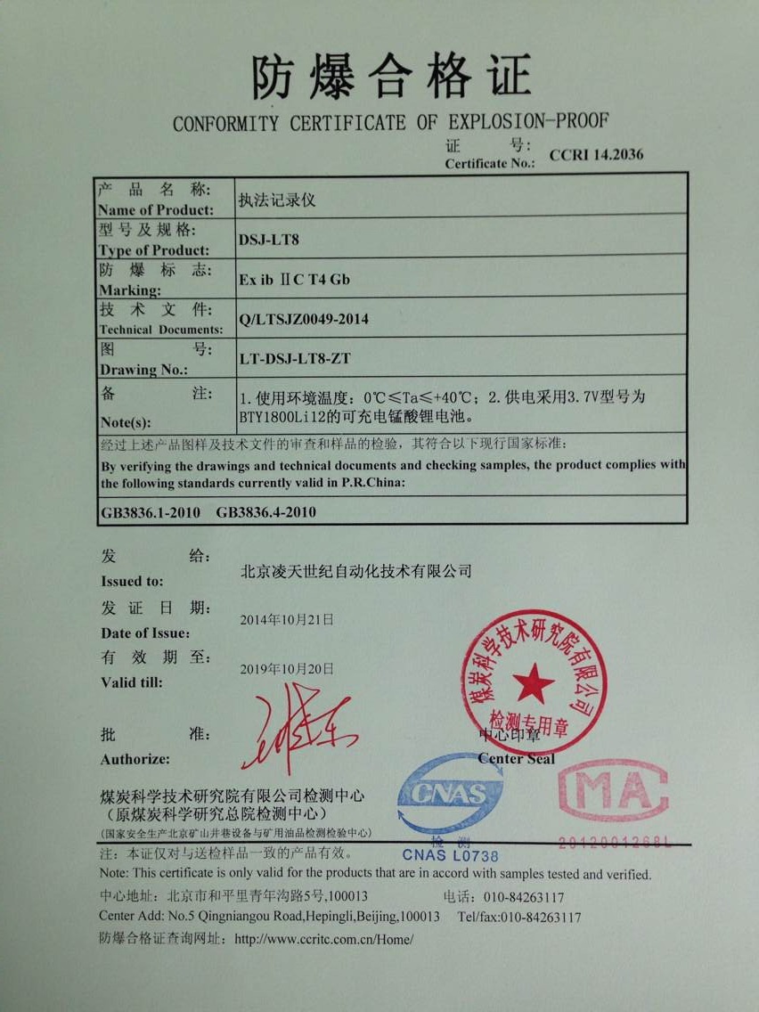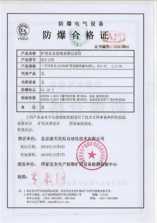 北京凌天防爆執(zhí)法記錄儀取得3c強(qiáng)制性認(rèn)證、化工防爆、煤礦防爆、MA