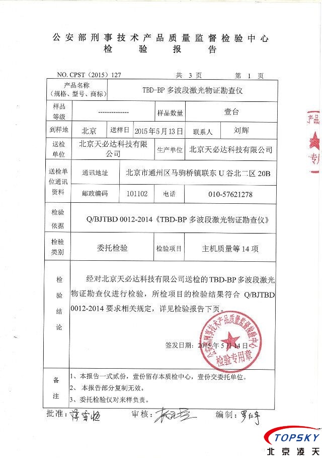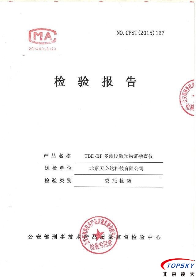 北京天必達(dá)自主研發(fā)多波段激光物證勘察儀取得公安部檢測(cè)報(bào)告
