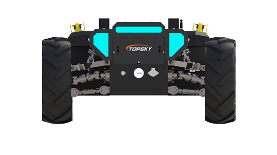 差速輪式機(jī)器人底盤采用鋰電池電源作為機(jī)器人動力源,使用無線遙控的方式遠(yuǎn)距離操控機(jī)器人,并可定制復(fù)雜的操作模式,主控提供串口/標(biāo)準(zhǔn)CAN總線作為通訊接口。整機(jī)采用四輪獨立驅(qū)動、四輪差速轉(zhuǎn)向以及前后雙橫臂獨立懸架結(jié)構(gòu),具有IP65防塵防水能力,能夠在多種復(fù)雜環(huán)境運行。同時,整機(jī)采用模塊化設(shè)計,四獨立懸掛、左右電控箱及電池可快速拆卸維護(hù)更換??纱钶d多種設(shè)備從而代替人進(jìn)行高效率作業(yè)。