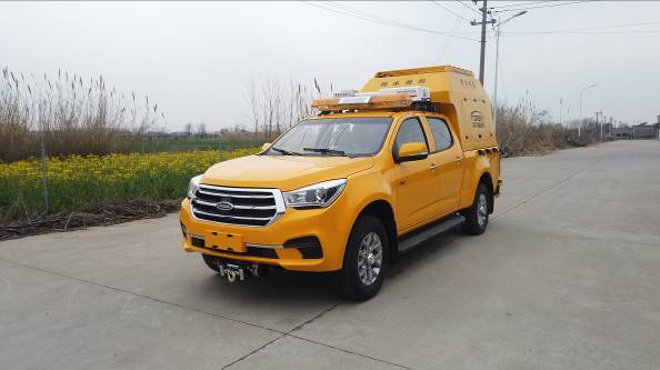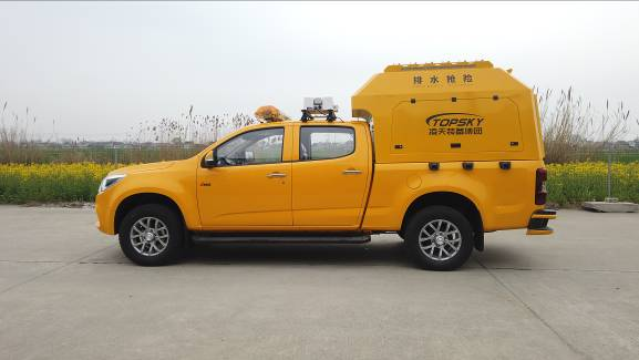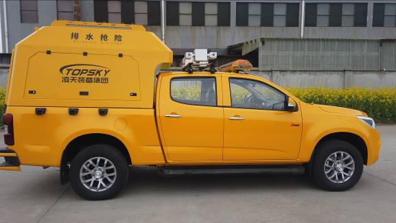 救險車(皮卡排澇車),具有大流量排水搶險功能,采用多功能貨車(皮卡)整車為運輸載體,搭載模塊化的分體/整體式鋁合金廂體,可與運輸車輛分離,獨立進行供排水作業(yè),廂體內(nèi)部安裝有柴油發(fā)電機組、移動排水泵、電控系統(tǒng)及安全防護裝置??捎糜诘叵萝噹臁⑺淼?、涵洞、城市狹小道路、居民小區(qū)等環(huán)境的排澇救援,城市內(nèi)澇災(zāi)害,可實現(xiàn)對積水的快速排洪救援;可為農(nóng)田進行抽水灌溉,進行抗旱救災(zāi);以及火災(zāi)撲救時遠(yuǎn)程供水的取水模塊。該模塊除排水抗?jié)惩?,可為外部裝置實施供電,為作業(yè)時場地實施夜間照明,以及可選裝100kg起吊,前部安裝有2t牽引絞盤進行自救,還可選裝高清云臺遠(yuǎn)程監(jiān)控,對作業(yè)區(qū)域?qū)嵤o人化管理。