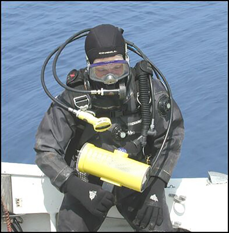 手持聲納設(shè)備為便攜式、組合式的聲納系統(tǒng),由聲吶發(fā)射器和聲吶接收器兩部分組成,可實(shí)現(xiàn)發(fā)射和接收的操作。聲吶發(fā)射器可為潛水員在水下定位水下物體。工作深度100m,頂部帶有指南針,方便在水下辨別方向, 整體為醒目的亮黃色,接收器帶有槍式握把,潛水員可單手操作接收器。
