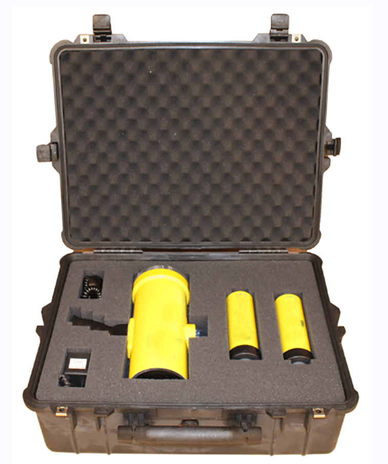 持聲納設(shè)備為便攜式、組合式的聲納系統(tǒng),由聲吶發(fā)射器和聲吶接收器兩部分組成,可實(shí)現(xiàn)發(fā)射和接收的操作。聲吶發(fā)射器可為潛水員在水下定位水下物體。頂部帶有指南針,方便在水下辨別方向, 整體為醒目的亮黃色,接收器帶有槍式握把,潛水員可單手操作接收器。