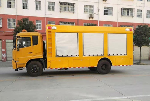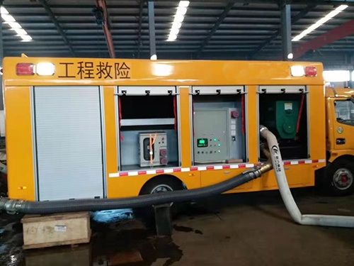 工程救險車。該車機(jī)動性強(qiáng),真正實(shí)現(xiàn)了移動水泵的概念,設(shè)備可滿足緊急排水搶險的需要,并具備移動電源功能