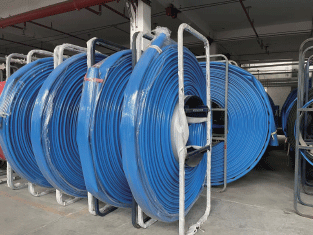 礦用高壓排水軟管采用一次性共擠成型工藝,由TPU內襯、編織層和TPU覆蓋層組成。TPU覆蓋層阻燃、抗靜電;編織層內含有抗靜電導線,TPU內襯可通過水、泡沫液、含油或弱酸堿性等液態(tài)介質。這種結構使得軟管重量輕、承壓高、質地柔軟、可卷盤、操作方便、鋪設及撤收機動靈活。