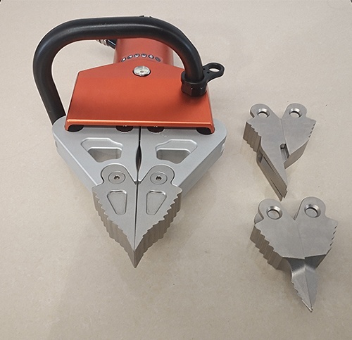 7.標(biāo)配開門開縫、撕裂兩套多功能工具頭,可根據(jù)實(shí)際救援情況隨意更換。開縫最小插入間隙為2mm,撕裂工具頭可手動(dòng)戳穿3mm的Q235A金屬板。