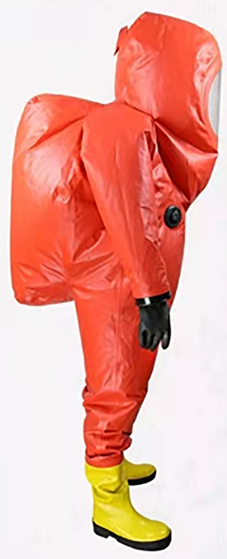 該防化服包括覆蓋全身的氣密型一體式防化服,供氣式呼吸器背囊,大號(hào)透明面屏,氣密型拉鏈,連體式防化鞋,可更換手套和排氣閥。與供氣式呼吸器使用時(shí),氣流通過(guò)供氣閥進(jìn)入面罩。呼出空氣通過(guò)面罩呼氣閥排入防化服,造成防化服內(nèi)輕微超壓。氣體通過(guò)防護(hù)服上超壓排氣閥排出防化服。頭罩內(nèi)有足夠的空間讓穿戴者佩戴安全頭盔并且可以自由轉(zhuǎn)動(dòng)頭部讀取壓縮空氣壓力計(jì)。寬大的袖子還允許使用者的手從手套與袖子中脫出來(lái),在防化服內(nèi)自由活動(dòng)。
