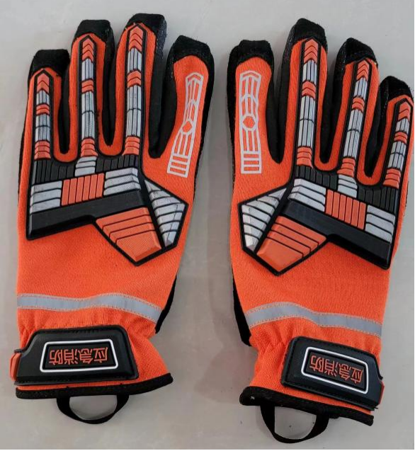 采用立體剪裁,符合人體工程學(xué),更加貼合手部,增加靈活性和舒適性。主體顏色采用橘紅色和黑色材料,與搶險(xiǎn)救援服搭配。指尖采用翻轉(zhuǎn)式設(shè)計(jì),增加指尖的貼合度。五指指尖補(bǔ)強(qiáng)耐磨布,增加指尖保護(hù),拇指指尖具有觸屏功能。手背關(guān)節(jié)處采用芳綸雙面針織布和TPR防撞條,可達(dá)到防砸抗震,下端為銀色反光標(biāo)記,寬度為1cm銀色反光條。