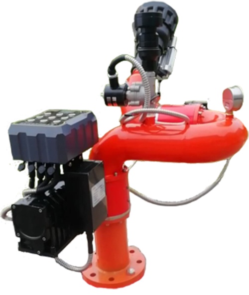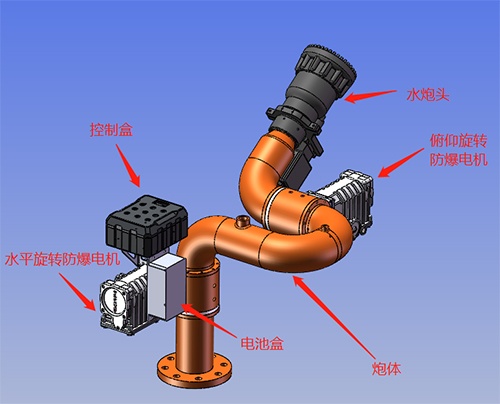 水炮頭的最大霧化角度可達120°,使得水炮的霧化噴射范圍更大,為大面積給火場降溫提供了更大幫助,同時,霧化的水霧顆??梢钥焖倨艚^火場周圍的空氣,達到切斷燃燒要素快速滅火的目的