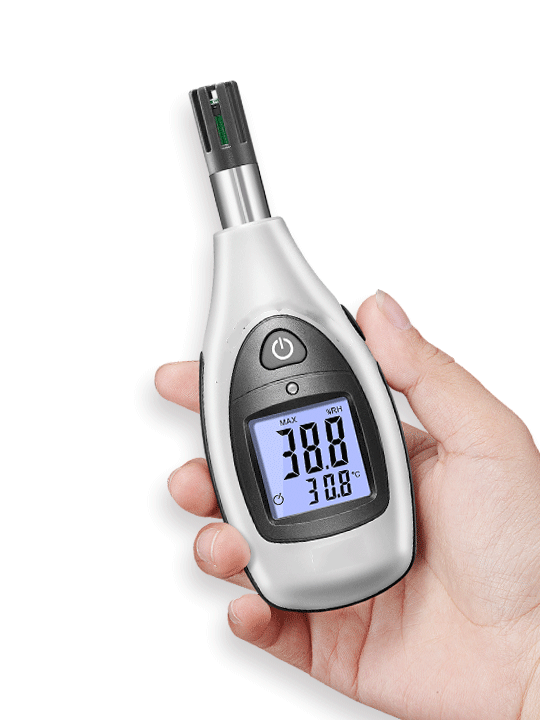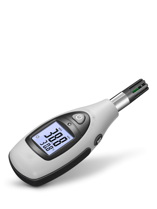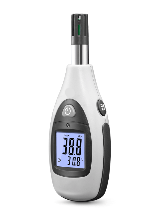本產(chǎn)品具有小巧便攜、高對(duì)比度帶感應(yīng)背光LCD顯示屏、舒適手持感等特征;全新低功耗芯片設(shè)計(jì),輔以科學(xué)算法,快捷精準(zhǔn)的測(cè)量空氣溫度和濕度。